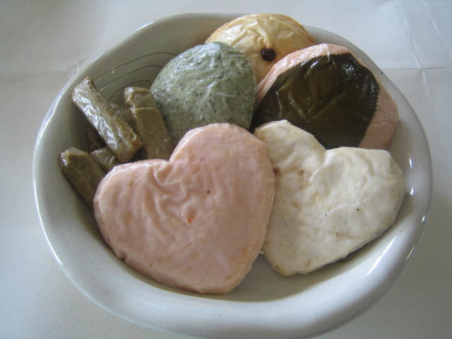 もう初夏の日和ですね。こうしてパソコンを打っているとカエルの大合唱が聞こえてきます。 以前、このブログで私達の結婚式のことをご報告させていただきました。 今日はその時に引出物として作った『めでたさつまあげ』についてご紹介したいと思います。 このさつまあげは、「練物屋の結婚式らしい何かオリジナリティーのあるものを・・・」ということで 今までにはない、かわいくて、焼津らしくて、食べた方に福を呼ぶようなさつまあげを作りたい! という思いから生まれました。 試行錯誤の末、『めでたさつまあげ』の完成はなんと結婚式の前日の午後7時! 以下の詰め合わせが出来上がりました。間に合ってよかったです・・・ ・かわいい紅白セット“ハート形桜海老しんじょ&白のハート型しらすしんじょ” ・もちもち食感の“お赤飯しんじょ” ・おめでたい香りの“桜葉” ・春を呼ぶ“よもぎ” ・焼津の味、スパイシーな“いわしからあげ” 上質のすり身を使い、包装も竹カゴやハートモチーフを使ったり・・・ ひとつひとつ愛情をたっぷり込めて作りました。 みなさんにも喜んで頂けて、予想以上の反響を頂戴しました。 私達にとって「おいしかったよ!」の一言ほど嬉しい言葉はありません。 今回いただいた感想を元に、さらにパワーアップした『めでたさつまあげ』を作りたいと只今企画中です。 早くホームページでご紹介したいです! どうぞお楽しみに! きれいなハート型をつくるのがけっこう難しかったです。 見た目はこんなかんじでした。 全て真空個包装。